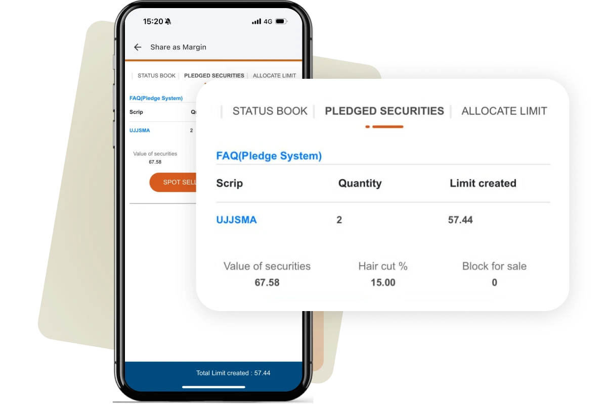 Shares as Margin allows you to pledge the shares held by you in your Demat account and generate limits against those shares.