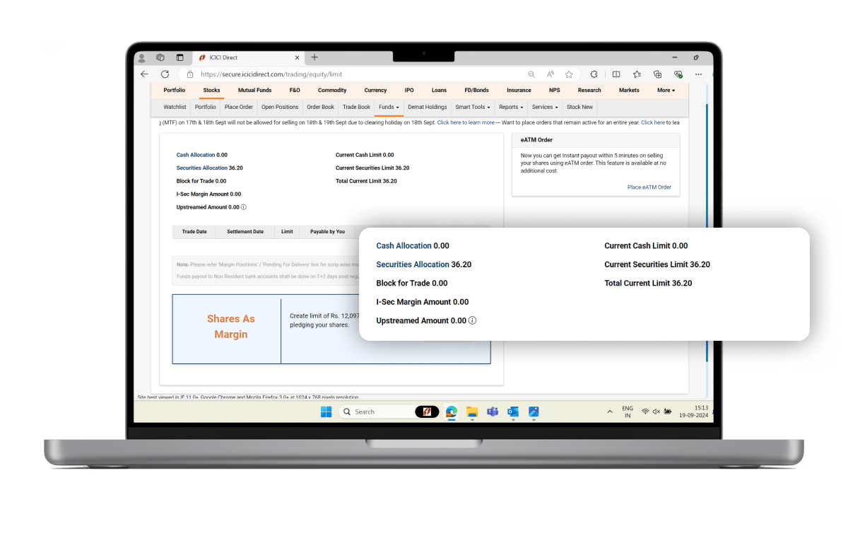 In case you have both cash and limits in your segment and a buy order is placed, Shares as Margin limits will be blocked first, followed by cash.