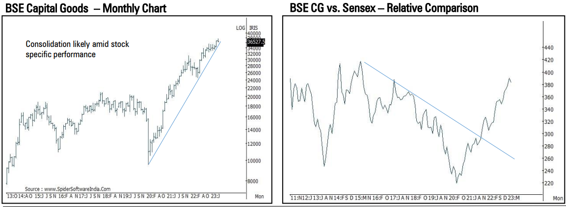 • Capital goods sector is turning stock specific after multi month of outperformance as some large cap names are expected to consolidate.