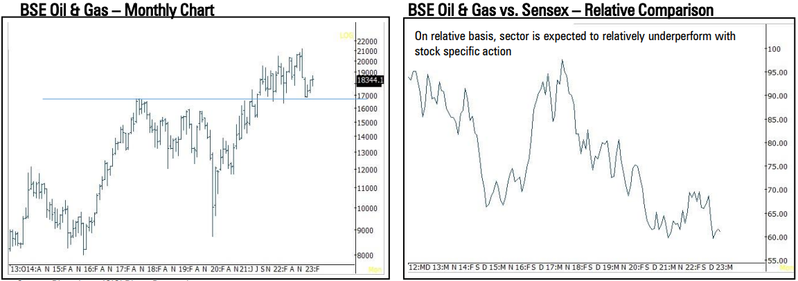 • The oil & gas sector is expected to remain laggard in terms of relative performance amid stock specific action.