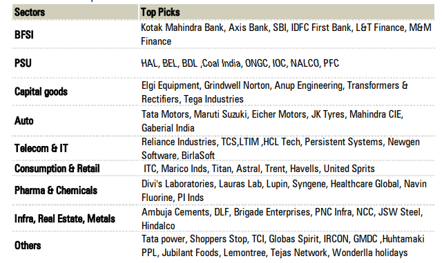 • We like Reliance Industries, TCS, LTIM, HCL Tech, Persistent systems, Newgen Software, Birlasoft from risk-reward perspective.