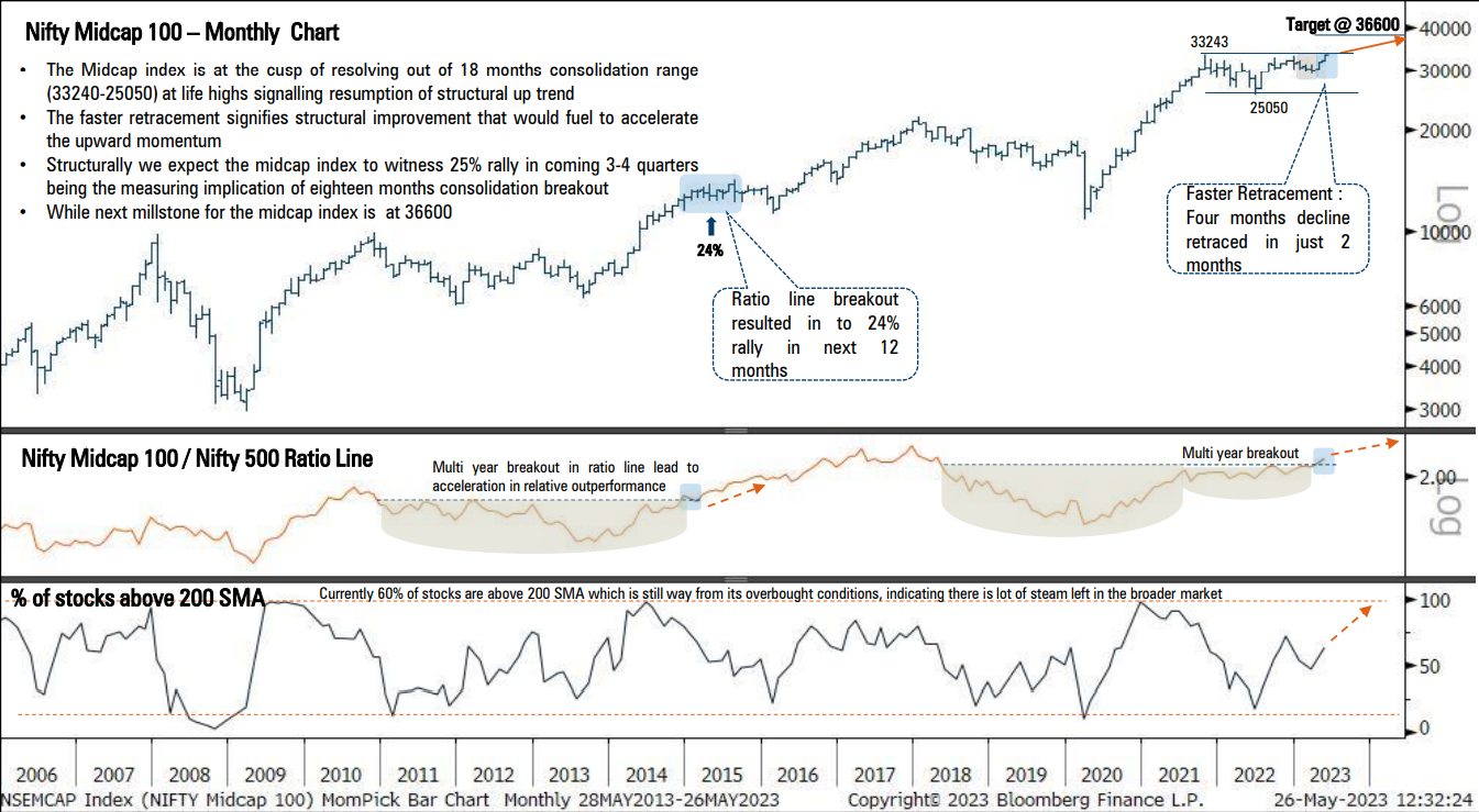 Nifty Midcap Index: Eighteen month consolidation breakout to trigger acceleration