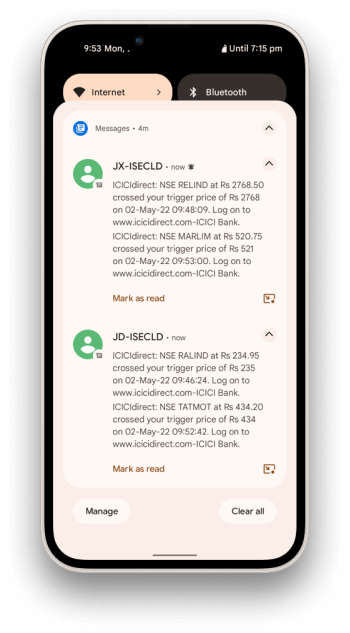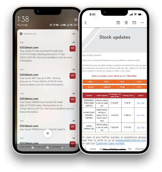 ICICIdirect understands your need to stay updated about your portfolio and Stocks at all times. Presenting Stock Alerts for Smart traders