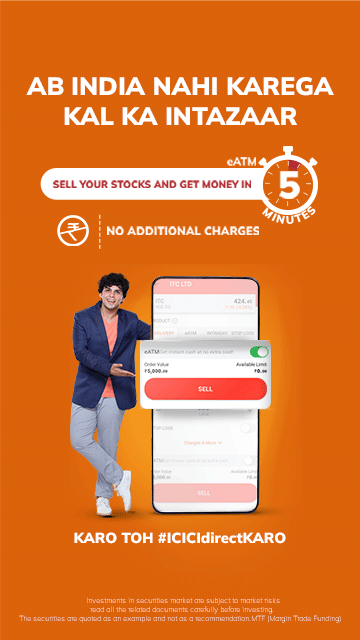 “I am using the instant payout feature - eATM launched by ICICIdirect from a very long time. Instead of the normal cash order, I always prefer to sell my holdings using the eATM feature as I don’t have to wait to get the funds. It take only 5 minutes to get funds in my linked bank account.”