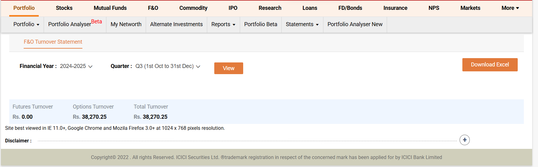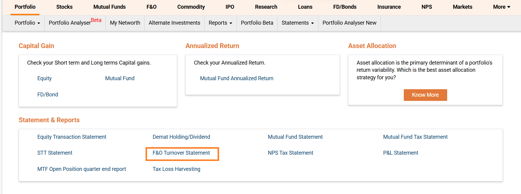 You can download your turnover statement by clicking on the F&O Turnover Statement