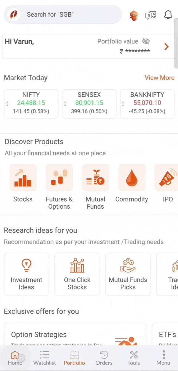 The Good Till Triggered (GTT) feature allows you to set conditional buy or sell orders that remain active until the set trigger condition is met. It helps automate trades by placing orders only when the market reaches the predefined price levels.