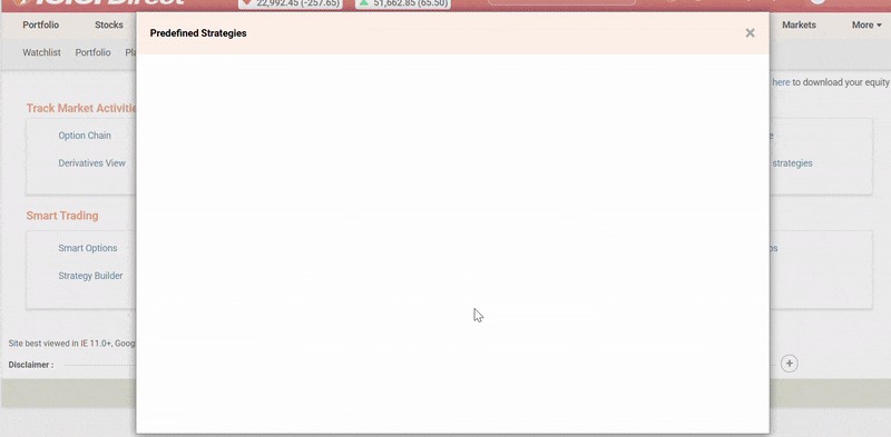 Through Website - F&O > Smart Tools > Predefined Strategies