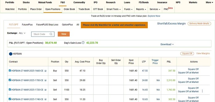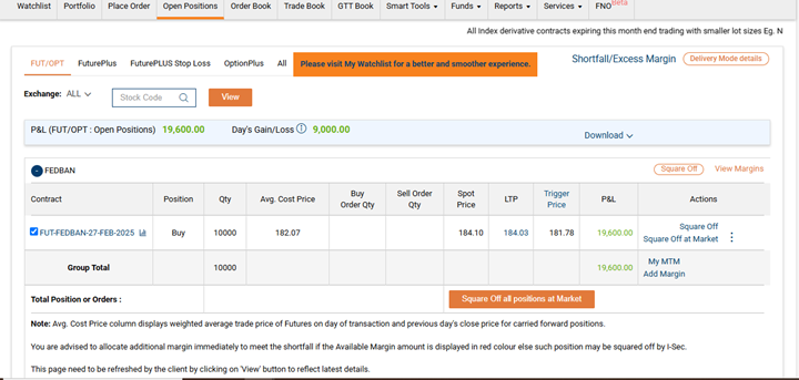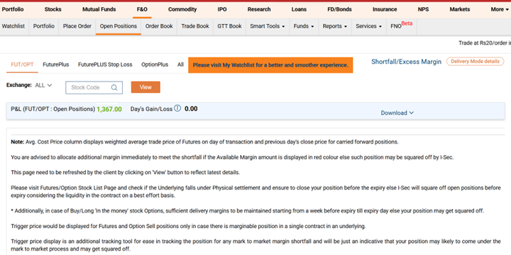 At present, ICICI Direct does not offer a feature to filter your Futures & Options (F&O) Profit and Loss (P&L) by specific contracts, dates, or custom time ranges.