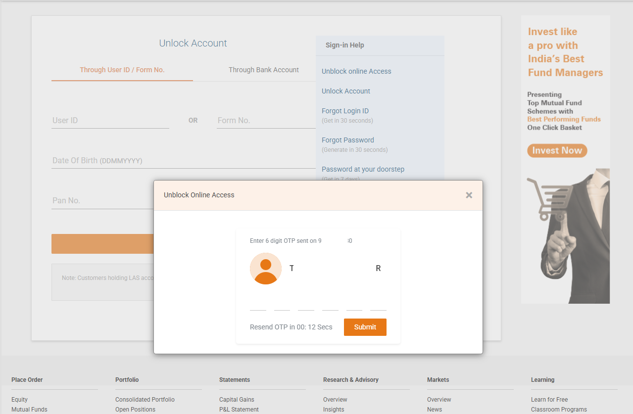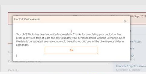 2. Fill Form for Unfreezing / unblocking the online access of ICICI Direct Trading Account