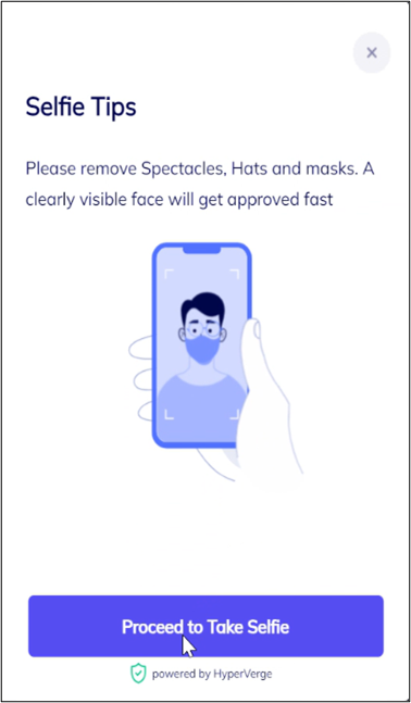 6. Click ‘Proceed to take selfie’ and allow camera access when prompted