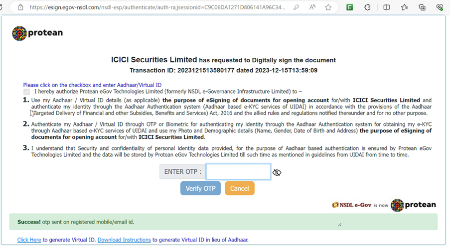 I hereby understand and agree to authorize the ICICI Securities and its affiliates/ group companies to reach me/send any communication pertaining to my Account / Investments and related services/facilities/special offers, or any other relationship held by me with ICICI Securities or in relation to various products, offers and services provided by ICICI Securities /its group companies, through registered e-mail, phone, SMS or any other electronic mode or other messaging or social media platforms. ICICI Securities will be sending One Time Pin (OTP) on the registered mobile number. I understand and agree that the email provider or any other service provider can review/monitor the contents shared/communicated through email provider or other service provider. I understand that such electronic mode of communication(s) are subject to the terms and conditions of the respective service provider and agree to comply with the terms of use of email, SMS, or any other electronic mode, as applicable and updated/modified by the service provider from time to time. I hereby expressly authorize ICICI Securities to disclose, transfer or part with any of my information (including my sensitive personal information, location etc.) or any other device information when ICICI Securities considers such disclosure as necessary, with Agents of ICICI Securities in any jurisdiction; (ii) Auditors, credit rating agencies/credit bureaus (including but not limited to CIBIL), statutory/regulatory authorities, governmental/administrative authorities, Central Know Your Customer (C-KYC) registry , exchanges or SEBI Know Your Client registration agency, having jurisdiction over ICICI Securities; (iii)Service providers, professional advisors, consultants or such person with whom ICICI Securities contracts or proposes to contract.
