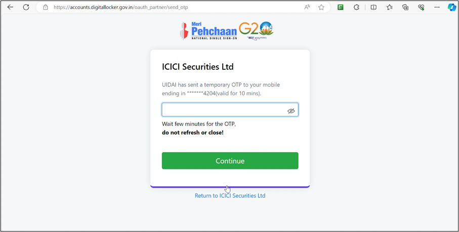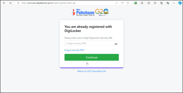 Customer need to enter Digilocker PIN. If customer is not registered on Digilocker, then complete registration.