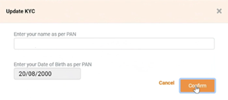 The customer must enter the name as per the PAN card or ITD in the same order. Please note that, the name cannot be entered as Nishanth A or Anantha N. Also, customer must enter exact Date of Birth as per PAN in DD/MM/YYYY format.