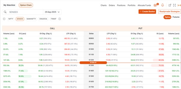 From Expanded Option chain: Add option contracts to a basket directly from your Expanded option chain and click on Payoff Analyser to evaluate.
