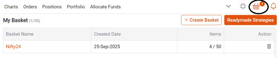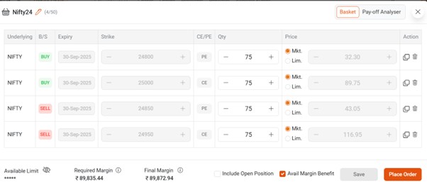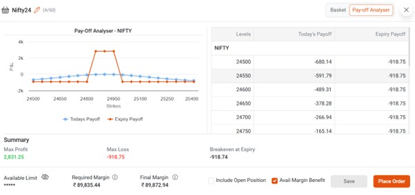 While creating a basket order (multiple legs), click on Analyse Payoff to see the expected payoff before placing the trade or Check pay-off analyser of the existing basket.