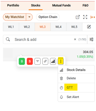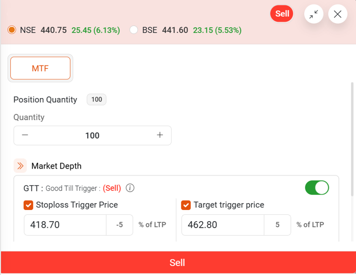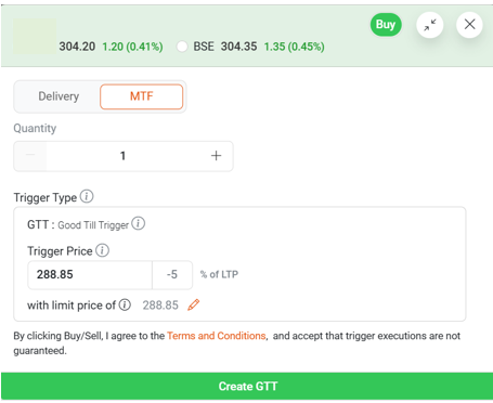 Once the inital buy order is executed, corresponding GTT sell order will become active with the specified Trigger price.