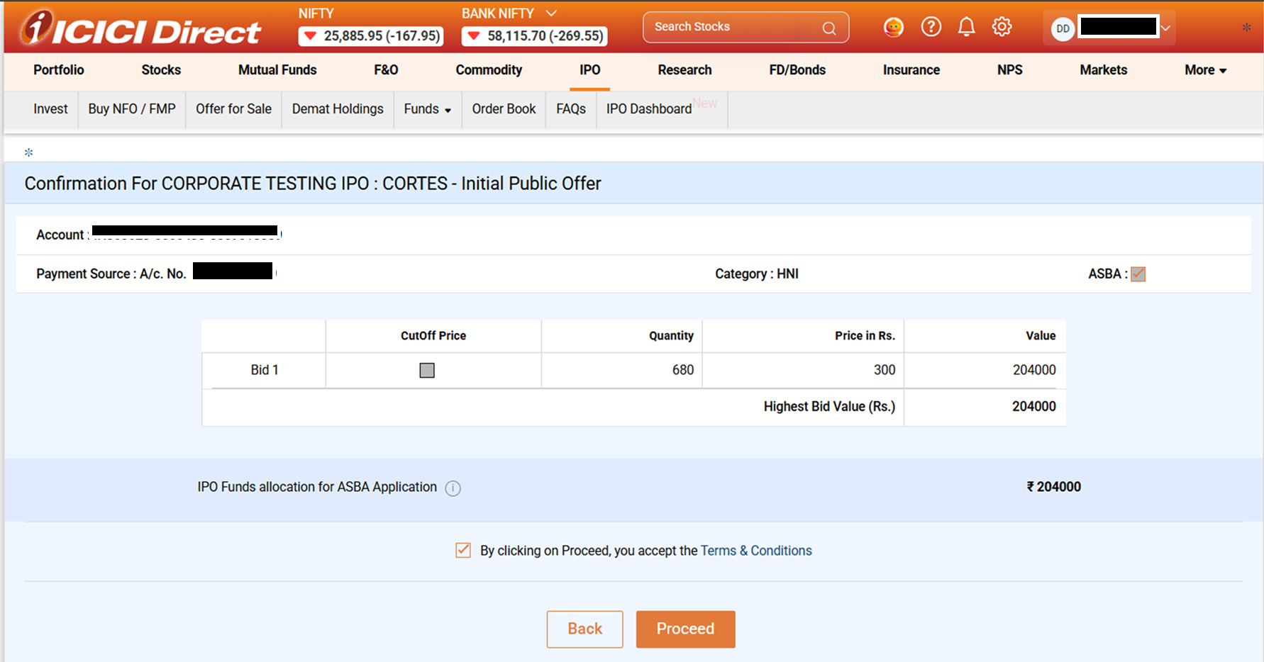 If you wish to do an upward revision of your HNI IPO application, here is how you do it on ICICI Direct website.