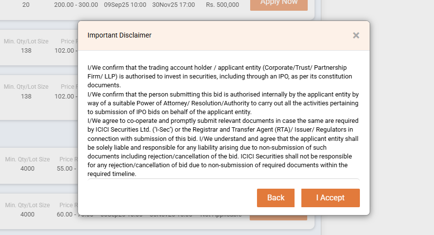 Please note: Your IPO Application bids may be routed to another exchange in case there are issues in forwarding the bids to your chosen exchange.