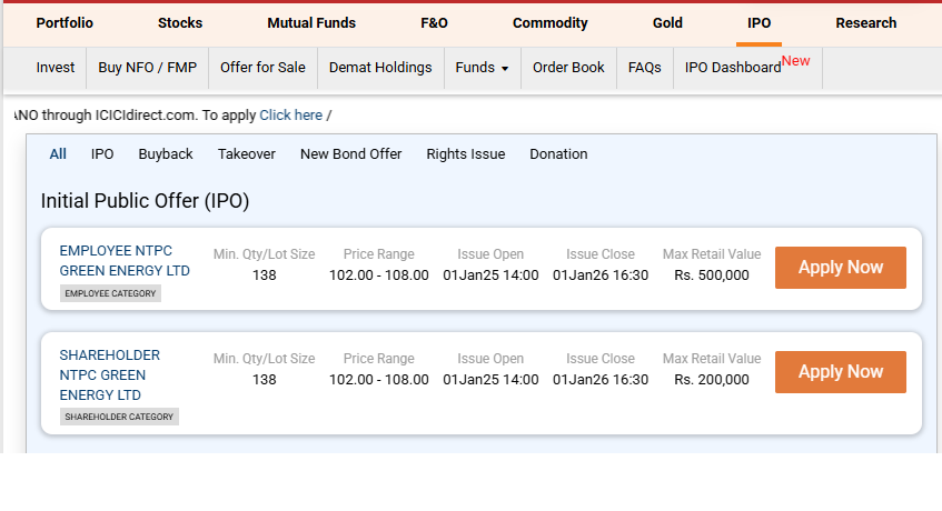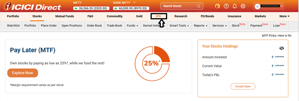 In case you don’t have a trading account with ICICI Direct, you can apply for IPOs by logging in to ICICI Bank net banking portal/mobile app.
