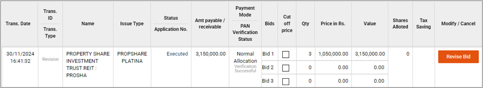 • Orders once placed cannot be cancelled or revised to a lower bid amount. Upwardrevision is allowed once your order status is executed.