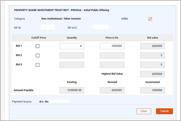 Step 2: Change the quantity, price and click on submit button. The bid value should be more than original application amount.