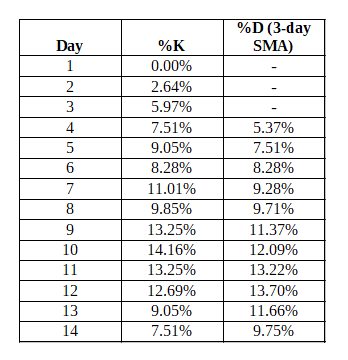 2. Calculate the 3-day Simple Moving Average of %K (%D):