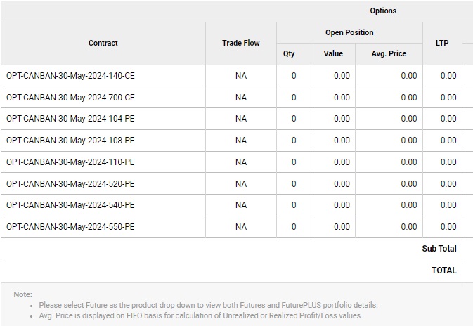 Adjustments in portfolio are shown as below taking an example of the CANBAN contract
