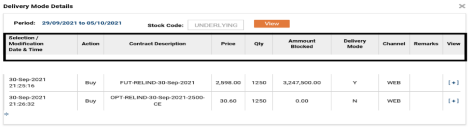To mark a position for physical delivery: Sign in to your ICICIdirect account, head to the F&O open position page before 12 noon and a new link to ‘Choose Delivery’ will be available against each stock contract. Click this to mark for Physical Delivery.