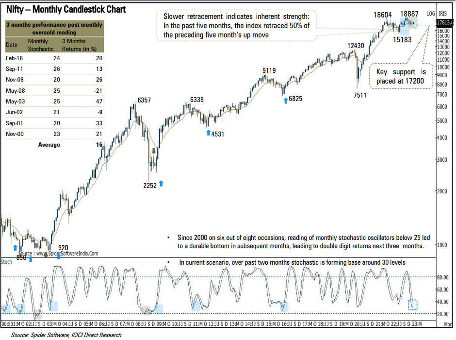 • In the process, we do not foresee the index breaching the key support threshold of 17,200 as it is confluence of: