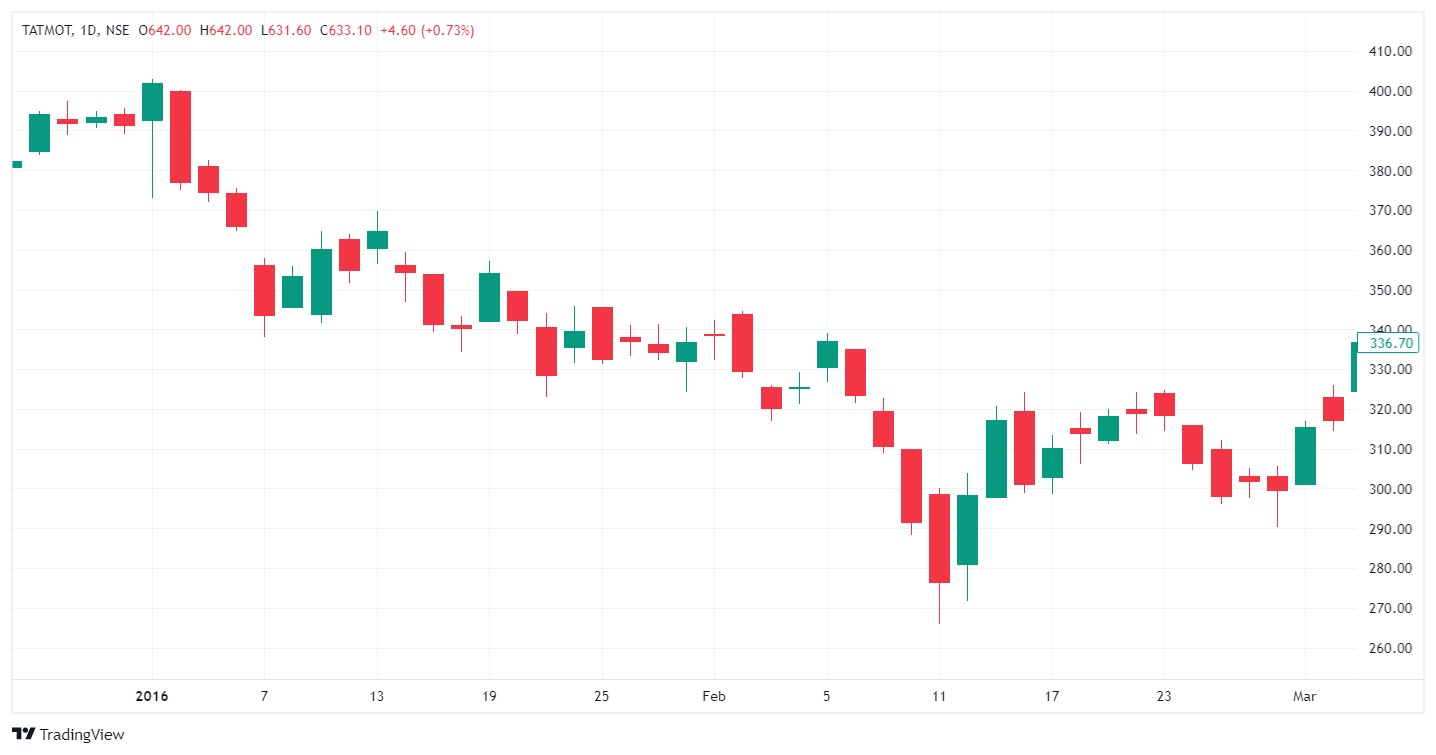 Tata Motors, a well-known Indian automotive company, displayed a Double Bottom pattern in 2016. This real-life example demonstrates how a Double Bottom can signal a potential trend reversal.
