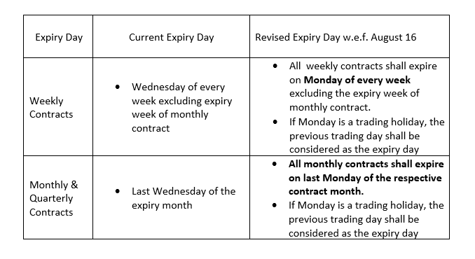 • Expiry cycles upto August 16, 2023 will continue to be on Wednesday only