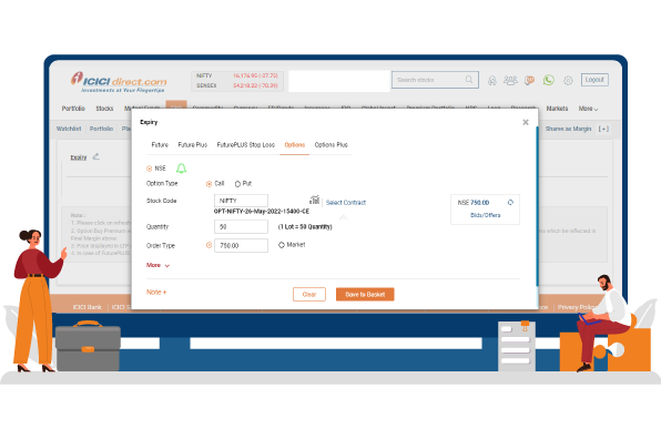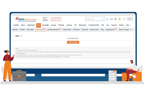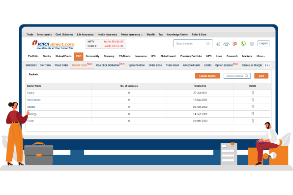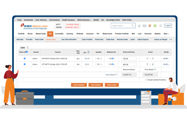 F&O traders can now place multiple multi-legged strategy orders in a single click and also view the overall margin required in saved baskets with the Basket Order platform available on ICICIdirect. You can add multiple contracts to a single basket and save it. Adding new contracts to a basket and placing orders through Basket Order is a fast and simple process.