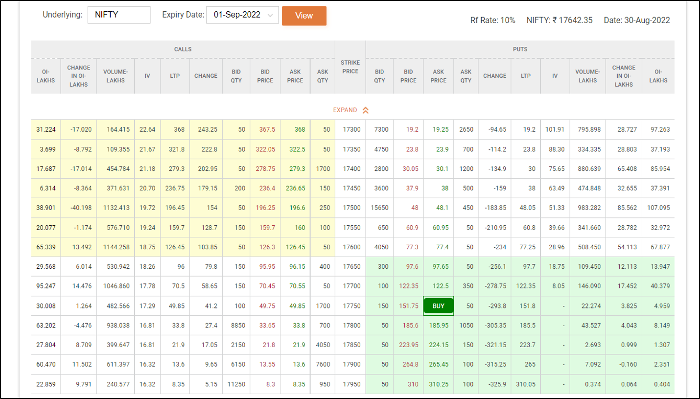• Buy or sell a particular strike to build your strategy directly from option chain