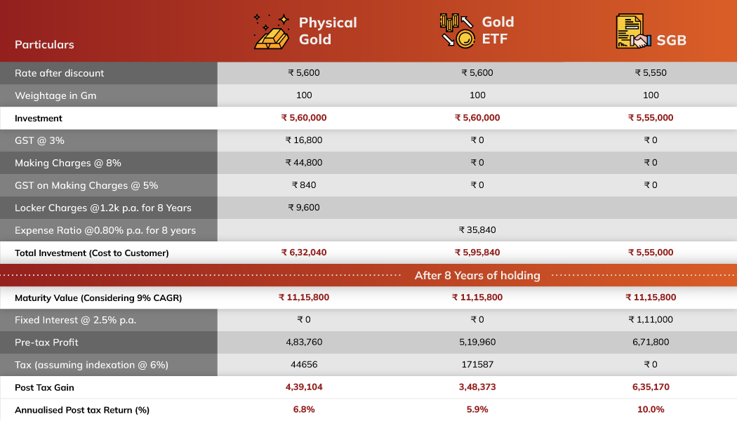 फिजिकल गोल्ड बनाम गोल्ड ईटीएफ बनाम एसजीबी की तुलना