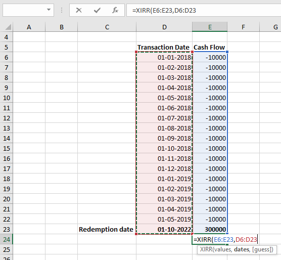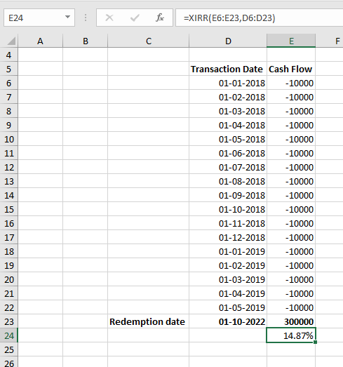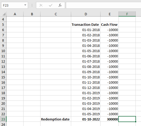 XIRR की गणना करने का क्रम इस प्रकार है: