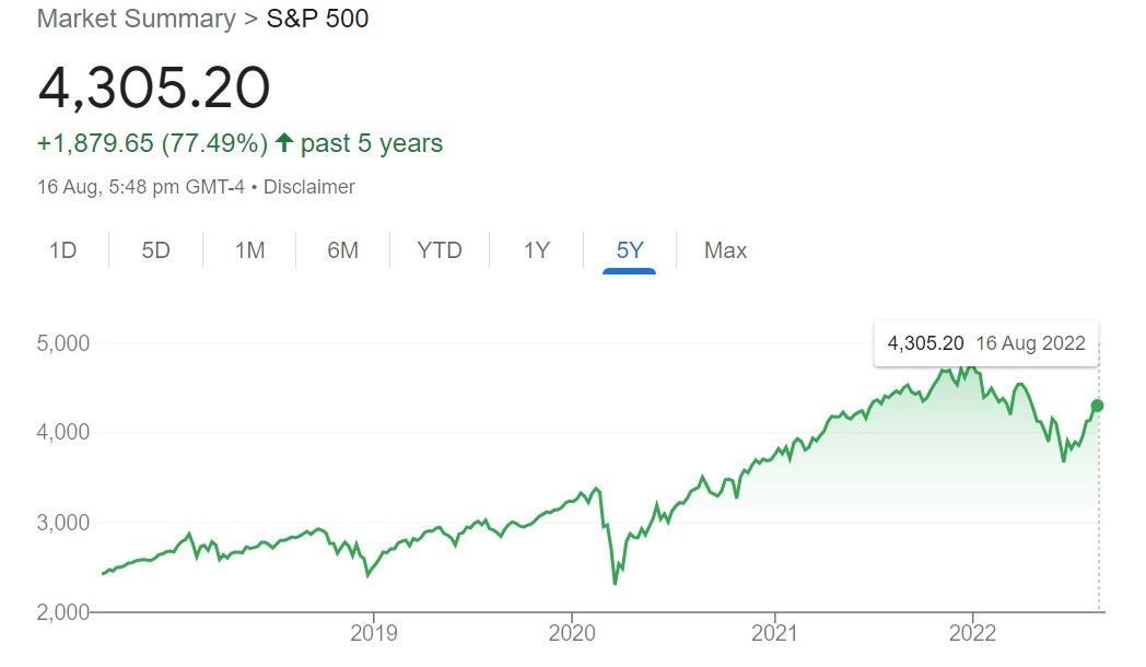 नोट: पिछले 5 वर्षों में एसएंडपी ने 77% से अधिक का रिटर्न दिया है