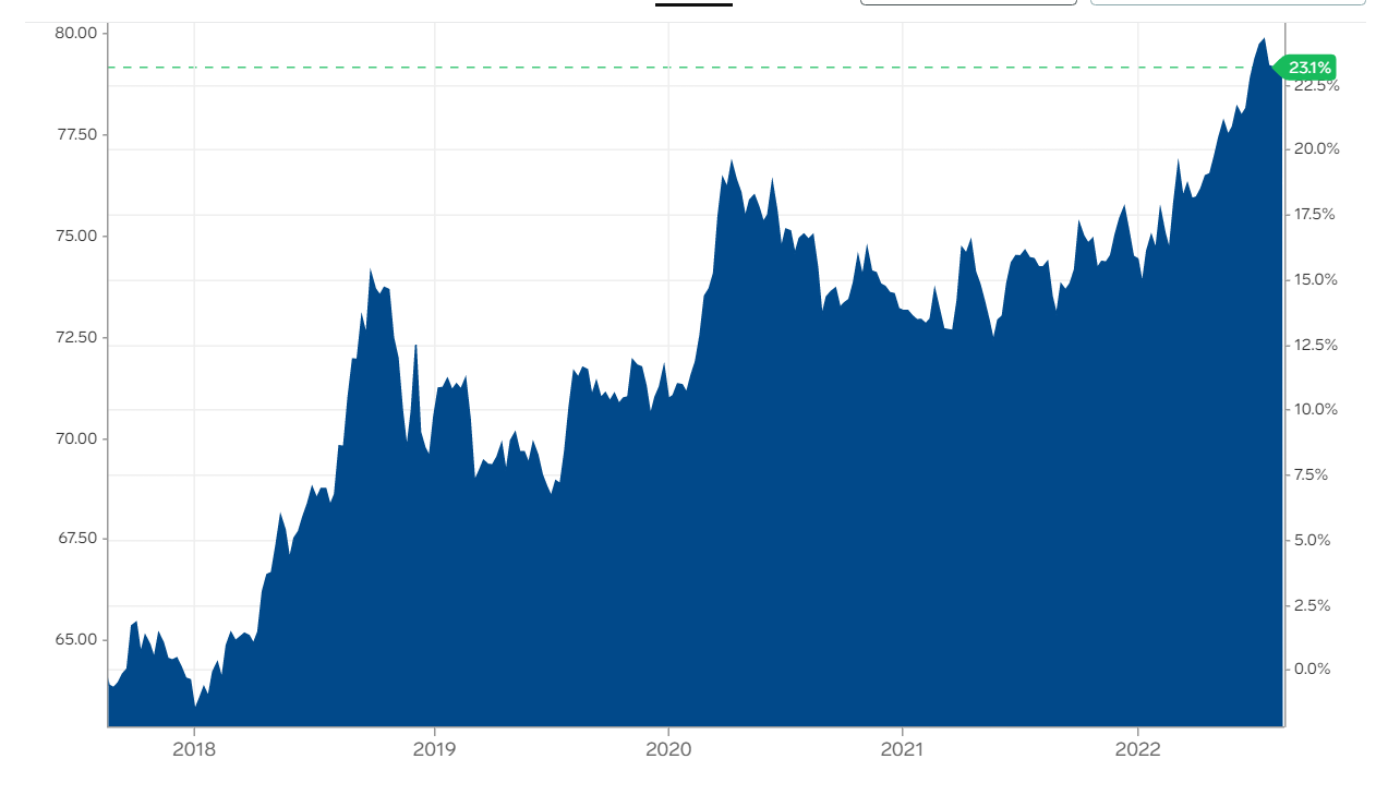नोट: पिछले 5 वर्षों में डॉव जोन्स ने 57% से अधिक का रिटर्न दिया है