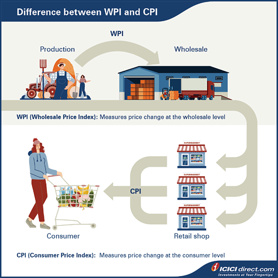 CPI उपभोक्ता स्तर पर मूल्य परिवर्तन को मापता है, जबकि WPI थोक स्तर पर मूल्य परिवर्तन को मापता है।