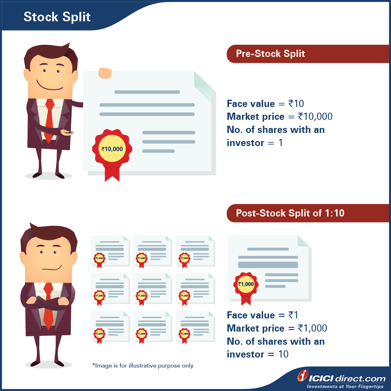 Stock split is the corporate action where a company decides to reduce its market price to increase liquidity by reducing the face value of the share and increasing the number of shares.