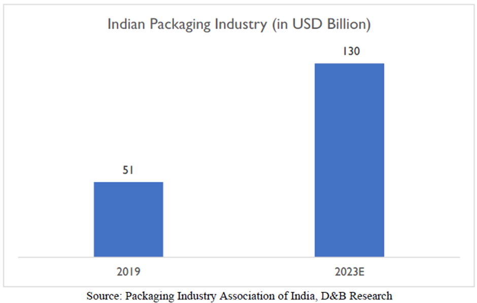 The packaging industry is one of the largest economic sectors in the country, and it is estimated that the Indian packaging industry accounts for approximately 10 to 15% of the global packaging industry. The India Packaging Market, valued at $50.5 billion in 2019, is estimated to have reached $130.14 billion by 2023, experiencing a compounded annual growth rate of 26.7% from 2019 to 2023. This reflects the robust growth of the packaging sector in India, expanding at a rate of 23-28% annually and establishing itself as a preferred hub for the packaging industry.