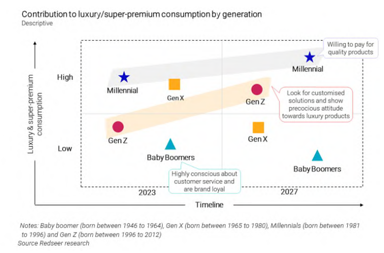 - Transition in customer segmentation: There has been a rapid increase in the millennial population (anyone born between 1981 and 1996 ages 25 to 40 in 2021) and Gen Z population (anyone born between 1996 and 2010). These group of population embrace luxury/super-premium products as they prioritise value offered by the products.Millennials and Gen Z populations are also digital natives and continuously engage with online content and are expecting highly sophisticated digital experiences