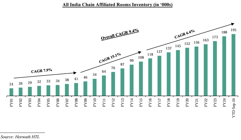 Total hotel keys penetration basis population as of 31 December 2023 is also lower in India at 0.3 keys per 1,000 people compared to 22.1 / 2.7 keys per 1,000 people in the USA / globally.
