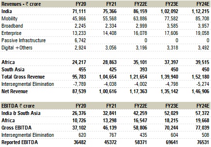 • 5G: The company awaits TRAI response on spectrum pricing (likely in March) with its key demand being lowering of reserve price and more considerate payment term. 5G device shipments, currently is in teens as percentage of overall smartphones, while installed 5G devices are 3-4 %and likely to reach 10-12% by March, 23. Similarly, on B2B front, not  many applications are required on 5G. Thus, its expects rapid growth in 5G networks only over medium term of 5-7 years