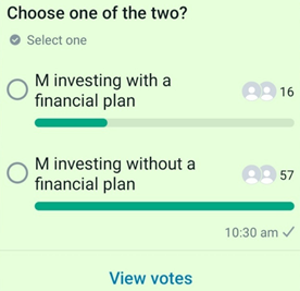 We did a small survey to see how people invest. Here is the result - Out of the 73 people who are investing, only 16 are investing with a financial plan - approximately 22%. The remaining are taking medicine without a prescription. We will understand the impact through an example.