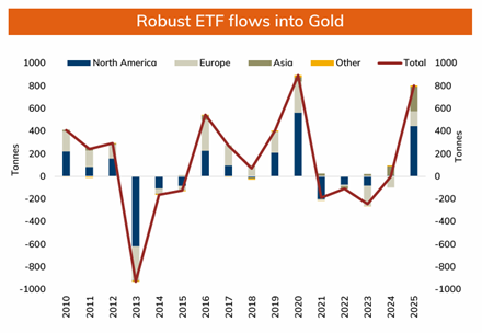 In the current environment, investors are expected to continue increasing their exposure to gold ETFs in their portfolios. Fresh investment demand may emerge in 2026 as investors view gold as a store of value.