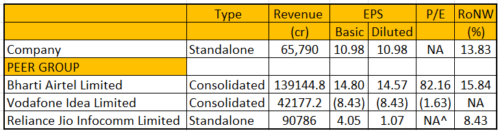 The company has two listed peers - Vodafone Idea, Bharti Airtel, and Reliance Jio Infocomm. In this section, we look at the financial performance of the three companies and see where BHL stands: