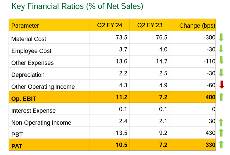 Sales Volume: In Q2FY24, the company sold a total of 5,52,055 vehicles. Compared to the September quarter last year, the sales volume has increased by 6.7% from 5,17,395 vehicles sold back then. It is the highest-ever quarter sales volume reported by the company.