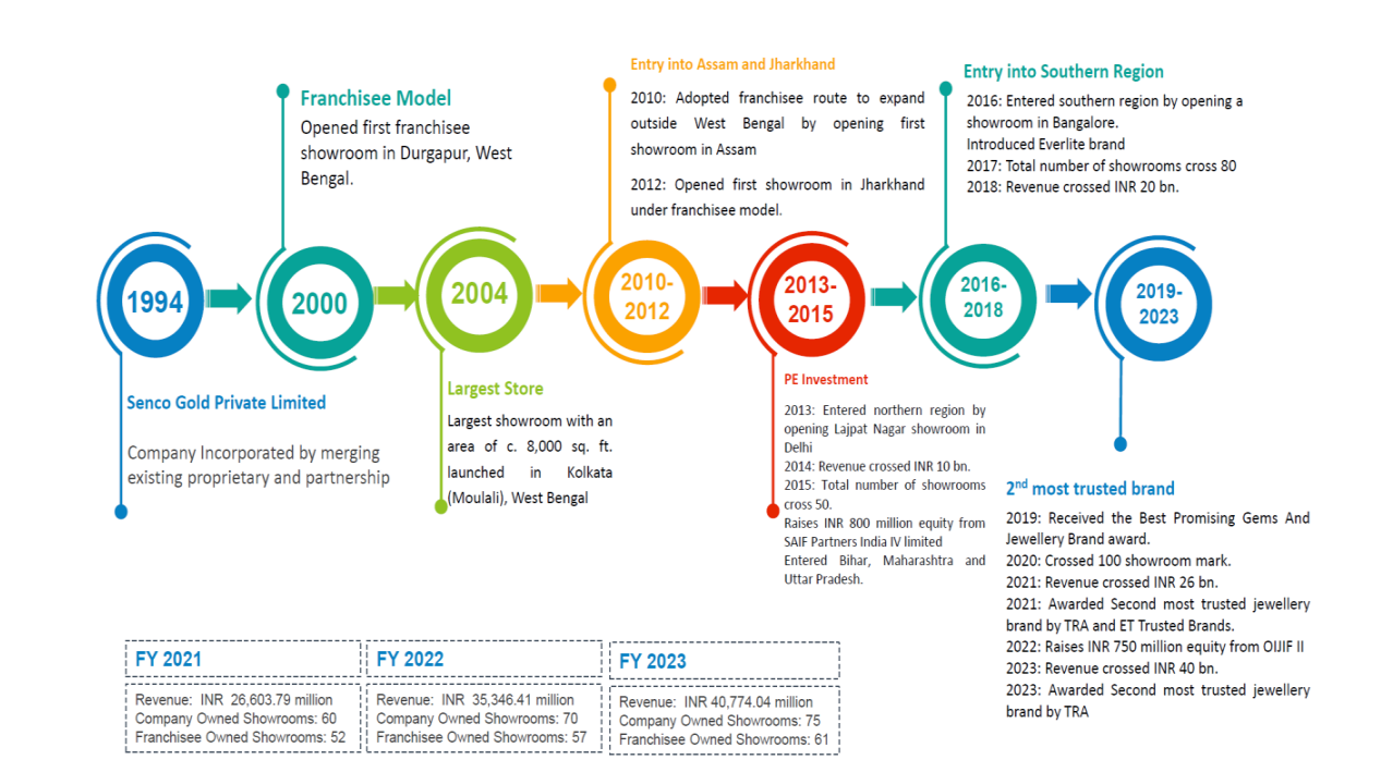 Senco Gold has both competitions from listed and unlisted players. Among the unlisted peers, the names include companies like PC Chandra Jewellers (since 1939), Anjali Jewellers Pvt Ltd (1992), and MP Jewellers (1945). However, all of these are regional players. For example, PC Chandra and Anjali Jewellers have a presence only in East India.