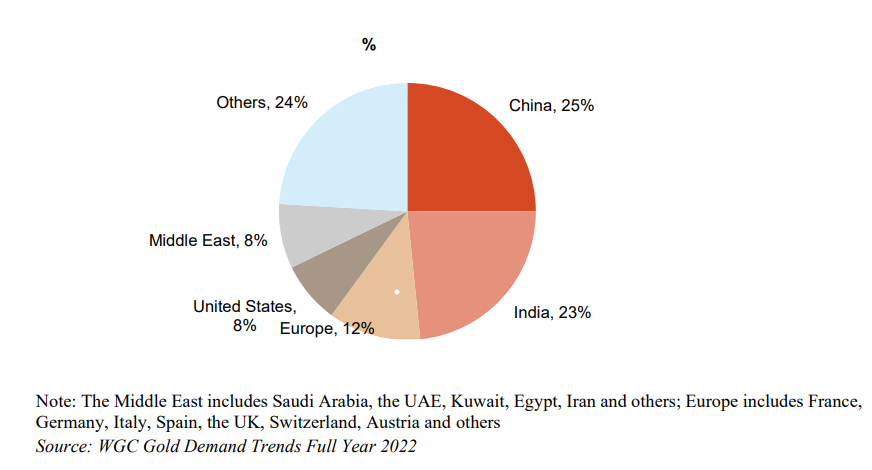 Annual gold demand surged 18% to 4,741 tonnes during CY22 on account of robust investment demand. Demand for bars and coins grew by 2% to 1,217 tonnes, while holdings in ETFs fell by a smaller amount when compared to CY21. Investment demand (excluding OTC) reached 1,107 tonnes – recording a growth of 10%. Higher central bank holdings for two consecutive quarters brought the annual holdings to 1,136 tonnes and contributed to the overall growth in demand.