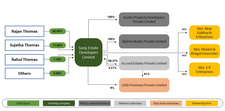 Suraj Estate is a real estate company that has been in the business since 1986. They develop real estate across the residential and commercial sectors in the South Central Mumbai region. SEDL has a residential portfolio located in the markets of Mahim, Dadar, Prabhadevi, and Parel, which are sub-markets of the South-Central Mumbai micro market. They are focused primarily on value luxury, luxury segments, and commercial segments. Recently, they have ventured into residential real estate development in the Bandra sub-market.